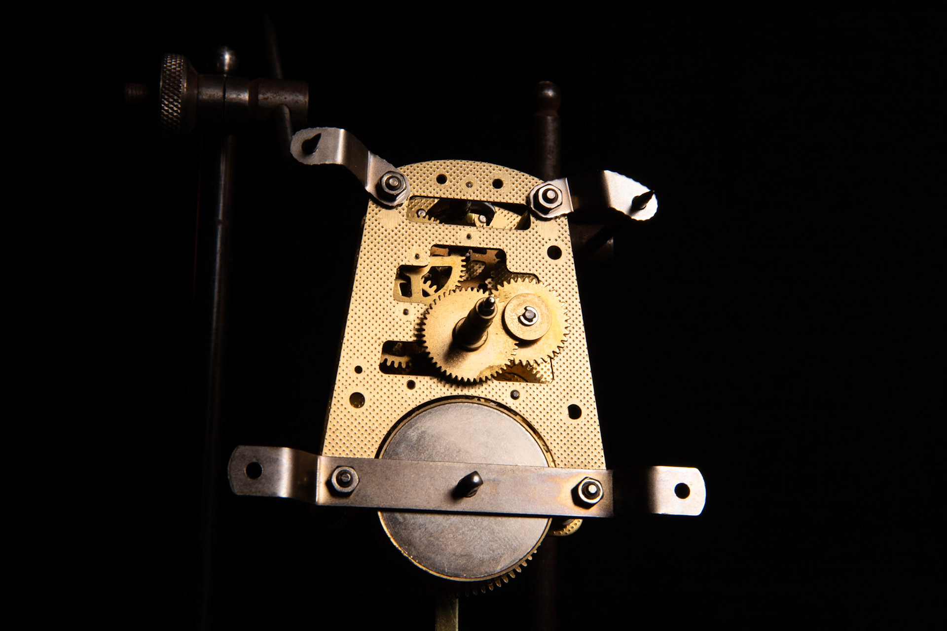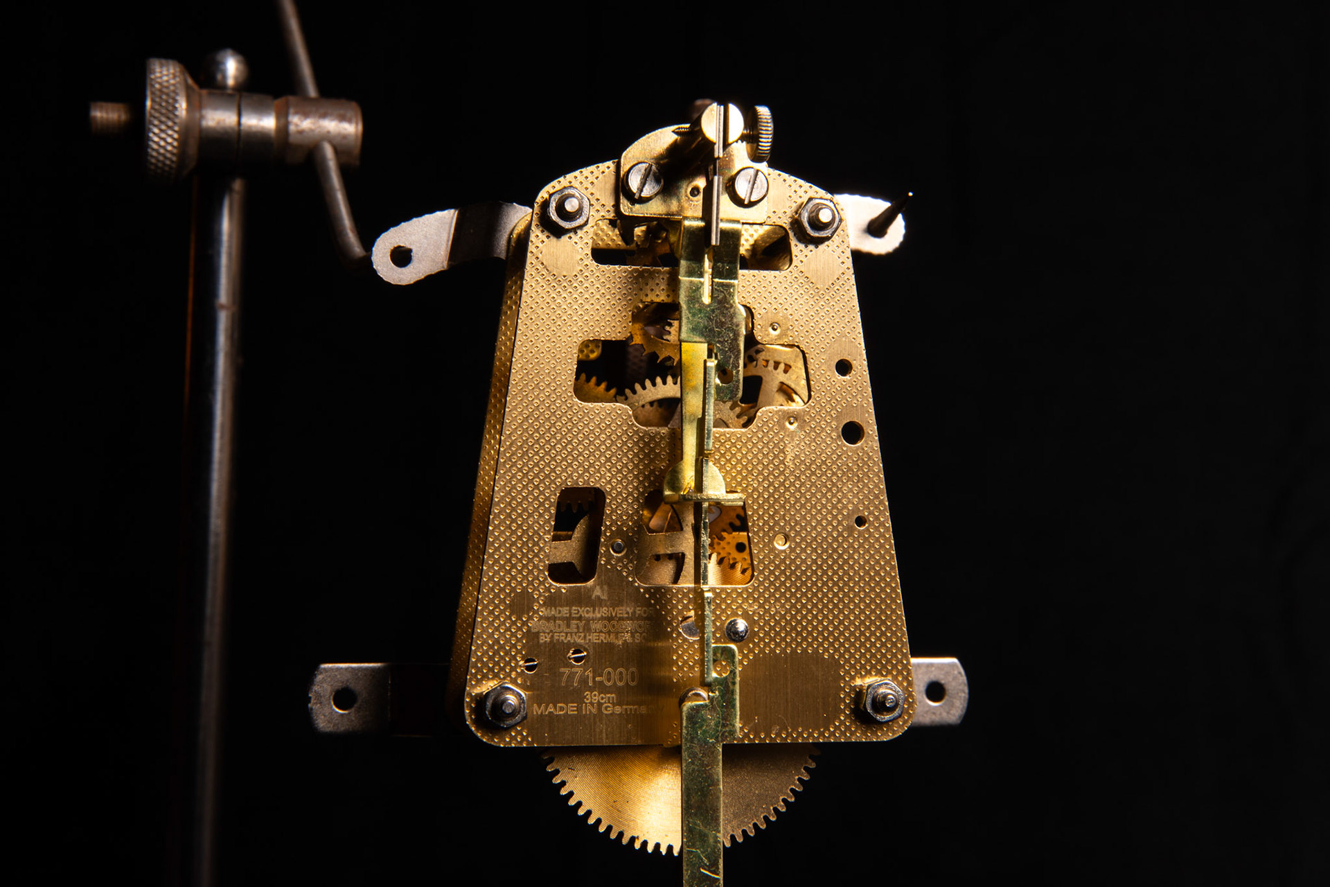Dial assembly.Clock mechanism.Skewed view of the mechanism.Certificate of authenticity.First pendulum view.Second pendulum view.Bezel detail 1.Bezel detail 2.